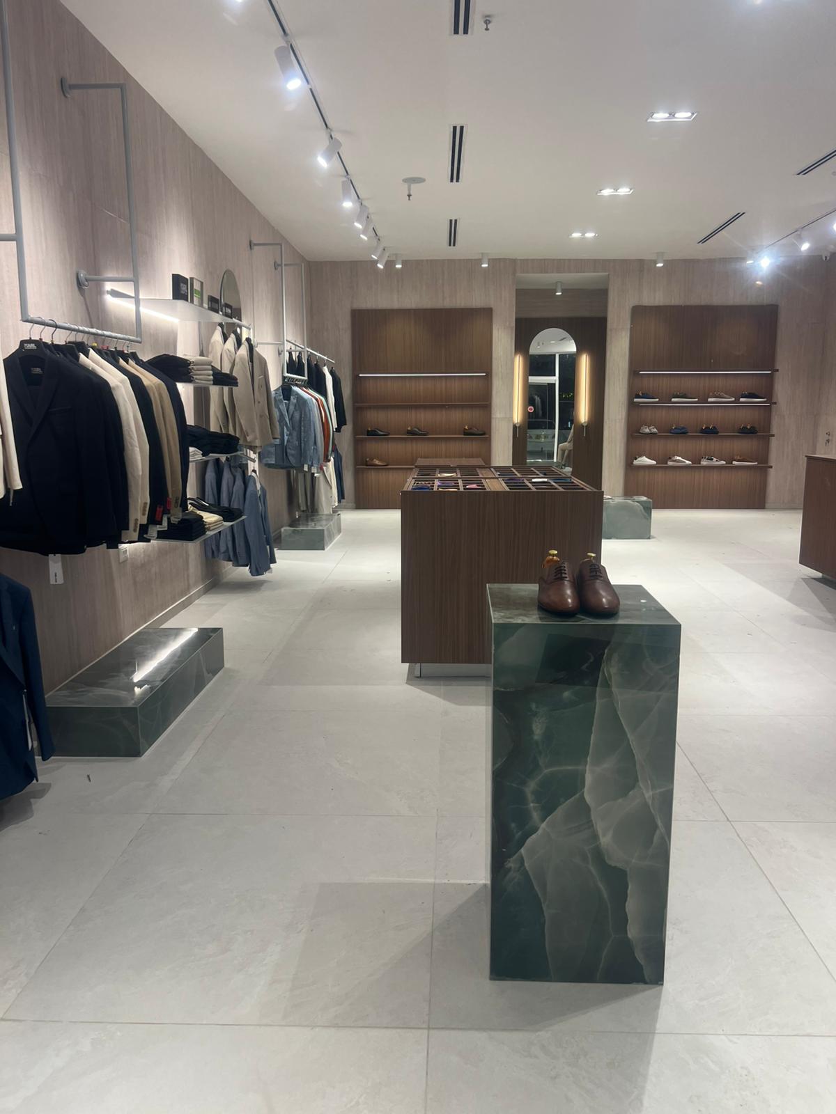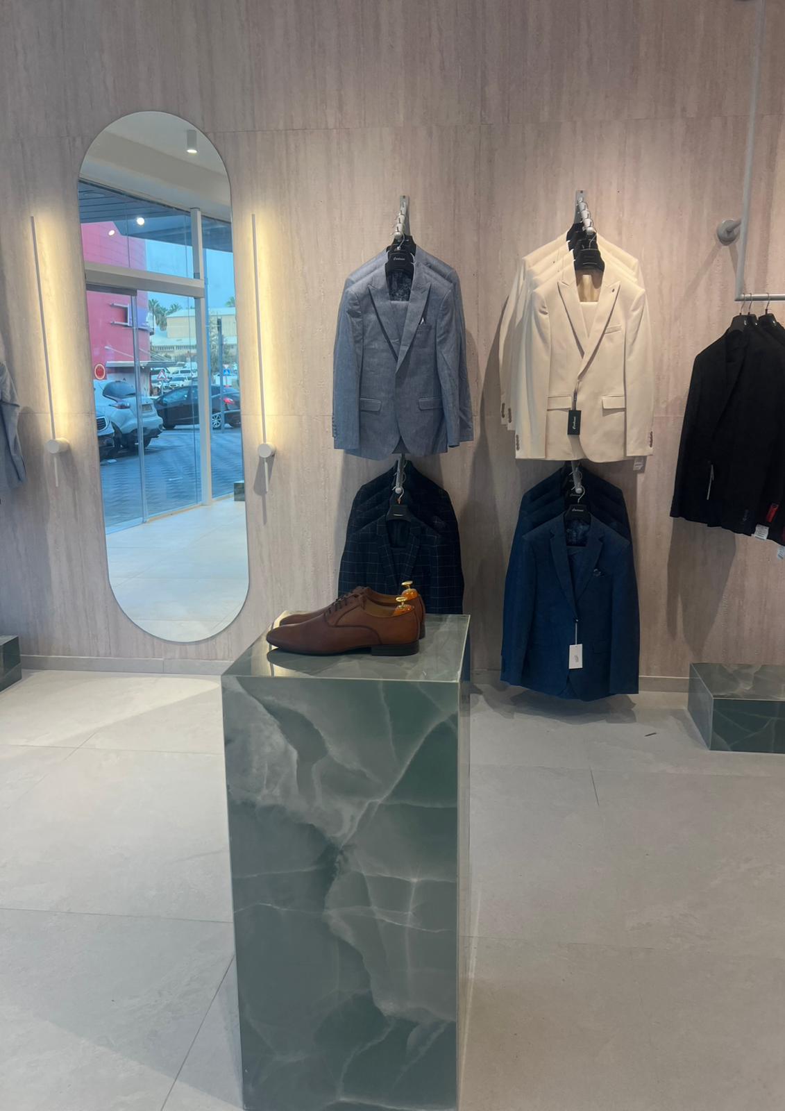 סניף באר שבע מעוצב בסגנון יוקרתי ומינימליסטי – רצפת אבן בהירה, עמודי שיש ירוקים, תאורה חמה ומוקפדת, ותצוגות מסודרות שמאפשרות חוויית מדידה נינוחה ומדויקת. הצוות שלנו מלווה כל לקוח באופן אישי, מרגע הכניסה ועד התאמות אחרונות, כדי שתצא עם הופעה שמספרת מי אתה.